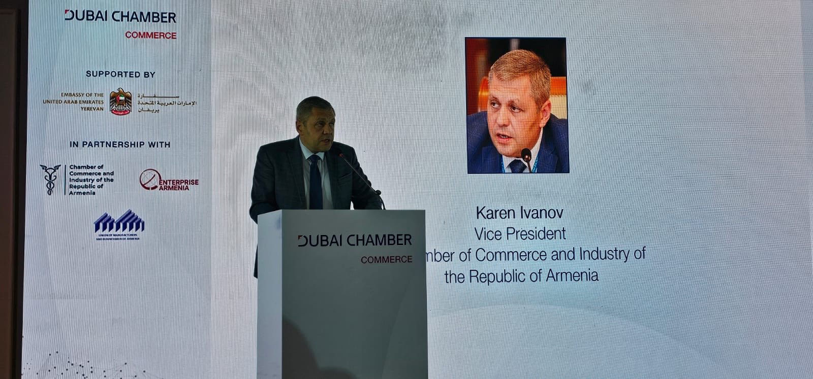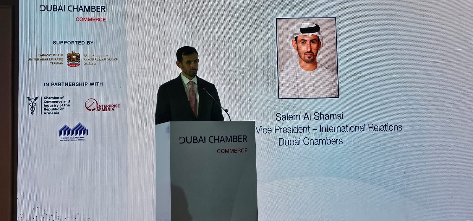 Այցի շրջանակներում կայացավ հանդիպում Հայաստանի առևտրաարդյունաբերական պալատի փոխնախագահ Կարեն Իվանովի և Դուբայի առևտրի պալատների միջազգային հարաբերությունների գործադիր փոխնախագահ Սալեմ Ալ Շամսիի միջև։